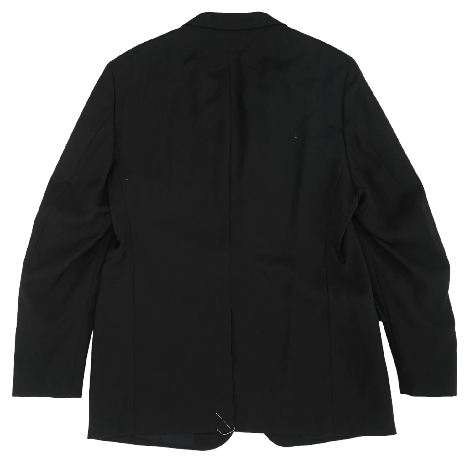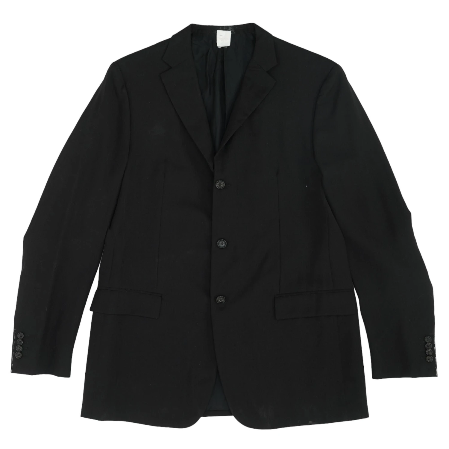 This jacket is tailored single-breasted collarless. With brown marble print buttons. It has a small spot on right chest area.